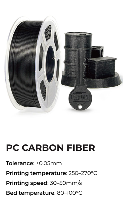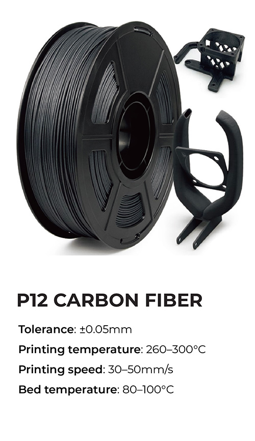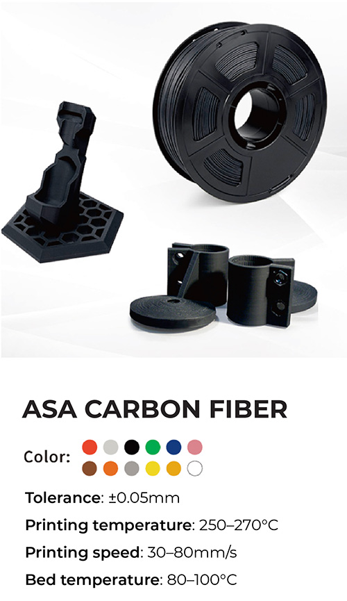 - Thermal and Chemical Resistance — Especially with PA-CF and ASA-CF grades